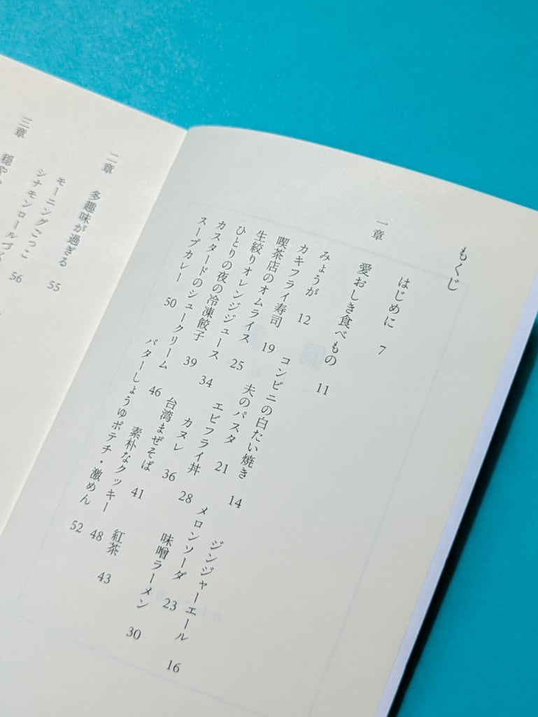 著者・かわにしあみは、自分の中にある大きな愛情を、目の前にある小さなことへと注ぎます。突然目覚めたみょうがのおいしさ、旅先のスーパーで見つけた日常品、コンビニの白たい焼き、ひとりの夜に食べる冷凍餃子——。どれも特別ではないけれど、確かに世界を明るくする瞬間です。