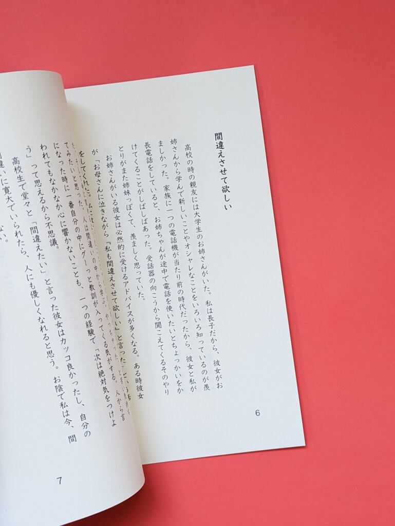 プロローグもあとがきも味わってほしい、とナミオさんが書くように、短い章ごとに立ち止まりたくなる本です。誰かの言葉がふと効いたあの日のことを、あなたもきっと振り返りたくなるはず。